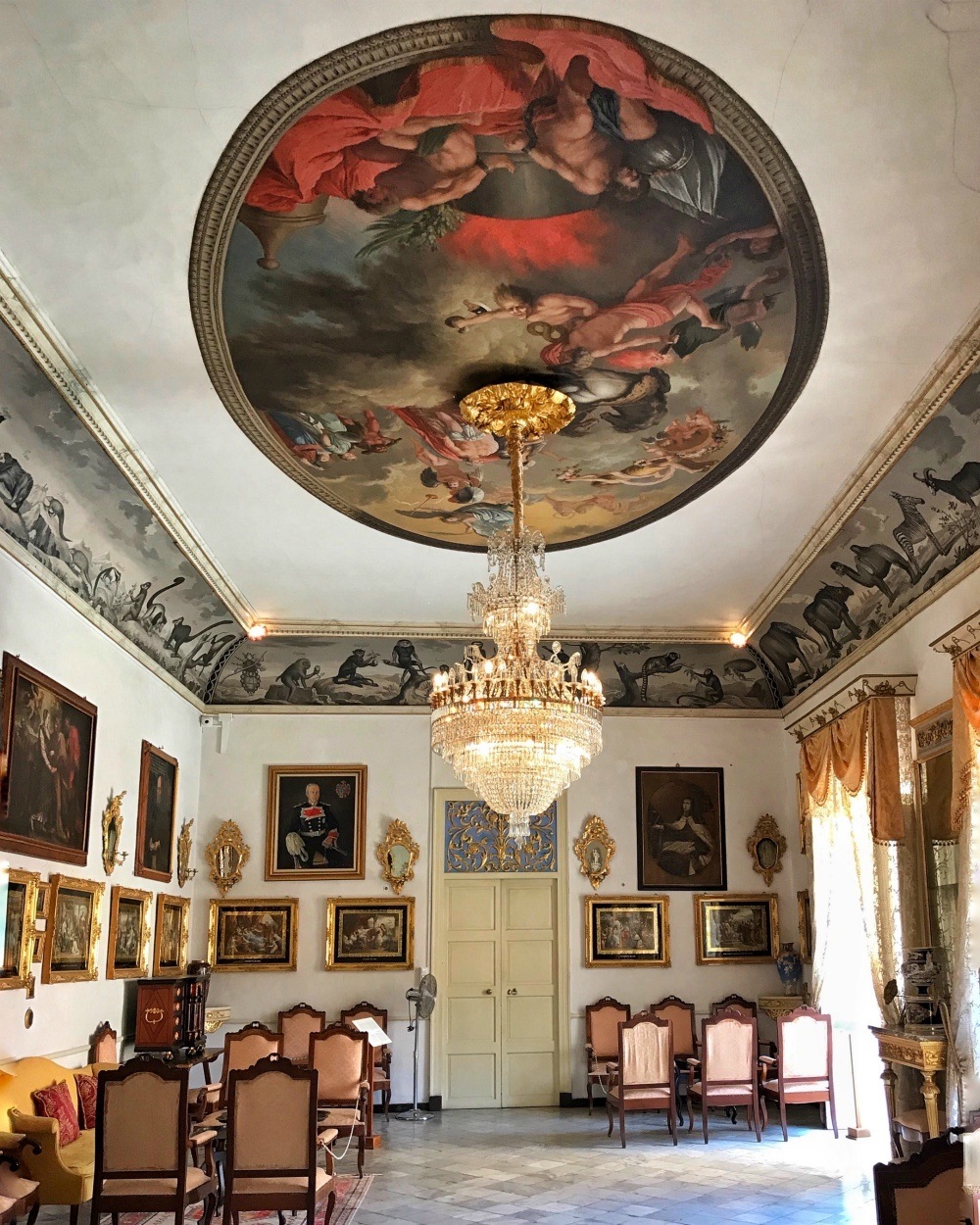 There’s a small charge to visit the Salort Palace. Head up the imposing staircase with its delicate wrought iron balustrades, until you reach the light and airy landing, from which the main rooms lead off. The red salon is hung with family portraits from this leading family on Menorca.